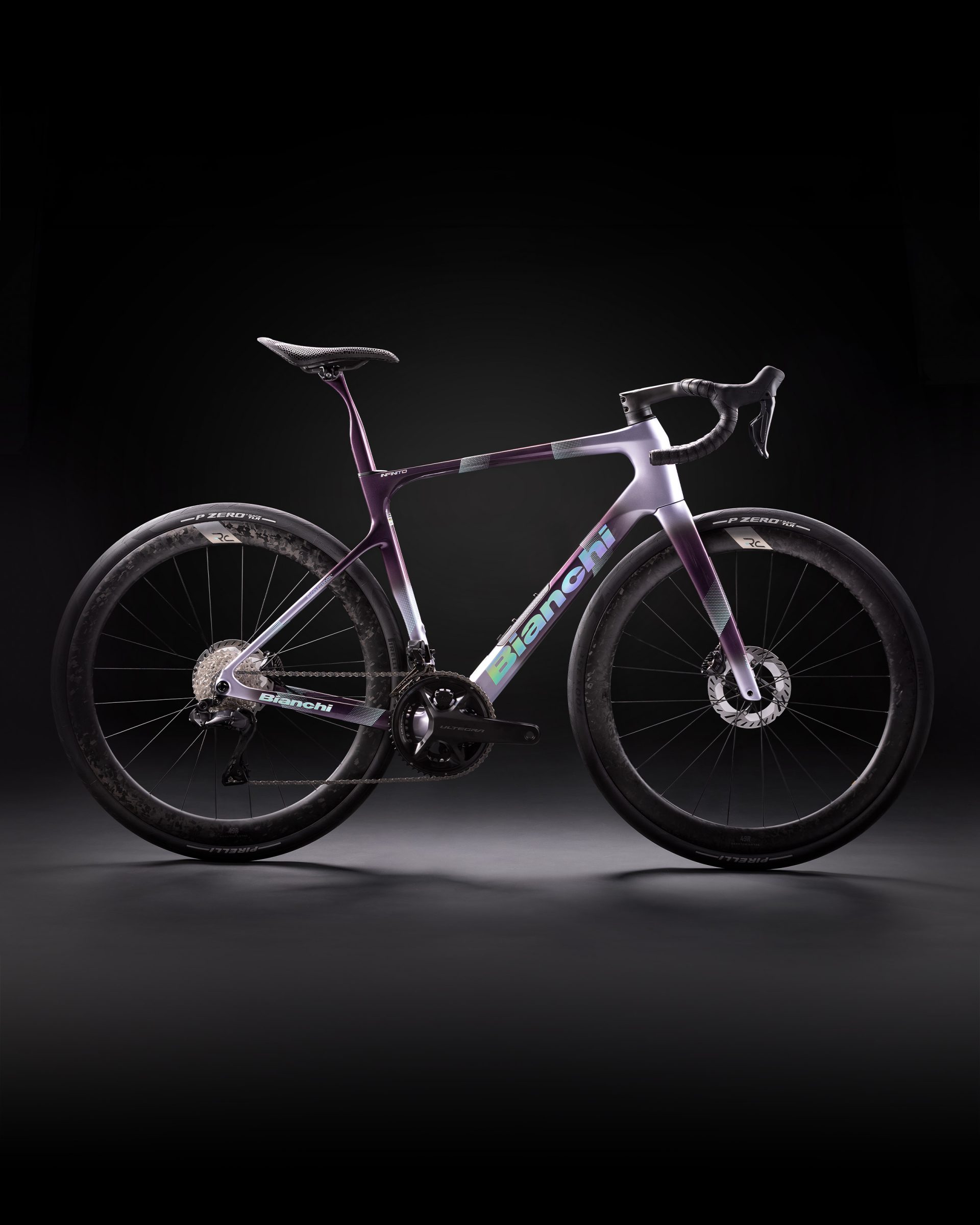 Bianchi’nin Reparto Corse ekibi tarafından geliştirilen yeni RC 49R karbon jantlar, ilk kez Infinito Pro modelinde sunuluyor. 49 mm profil ve 25 mm iç genişliğe sahip bu jantlar, kadroyla mükemmel uyum sağlayacak şekilde optimize edilmiştir.